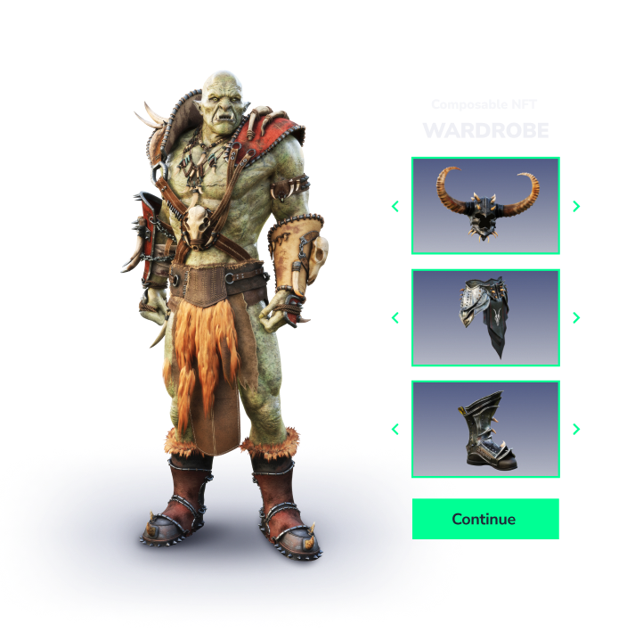 Based upon your rules and sponsors, players can assemble multiple NFTs into one composed NFT. It behaves and sells like a single unit, and yet can be split back apart to be sold or used separately.